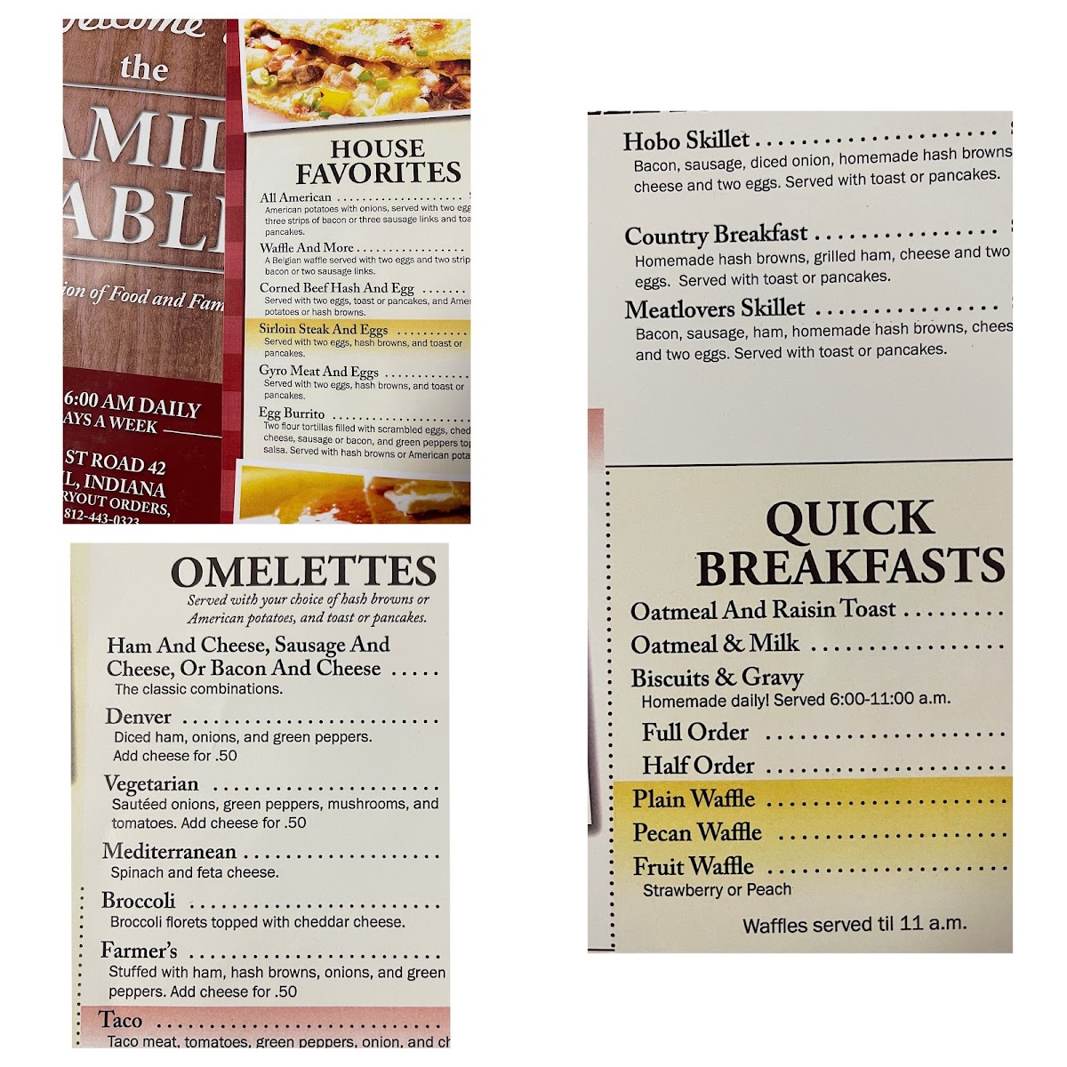 The menu at Family Table Restaurant reflects its warm, inviting atmosphere with straightforward, hearty American classics and familiar breakfast favorites. It’s the kind of place where you can enjoy a relaxed meal any time of day, whether it’s a casual breakfast with the family or a comforting lunch after a morning on the road.